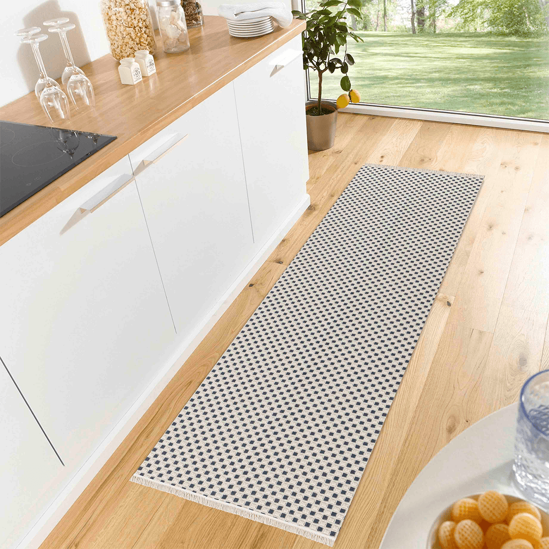 Blue Modern Geometric Machine Washable Runner Area Rug