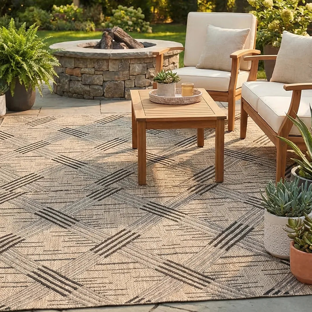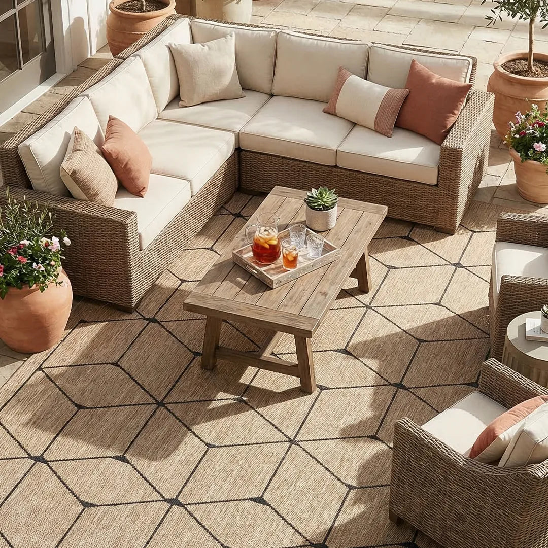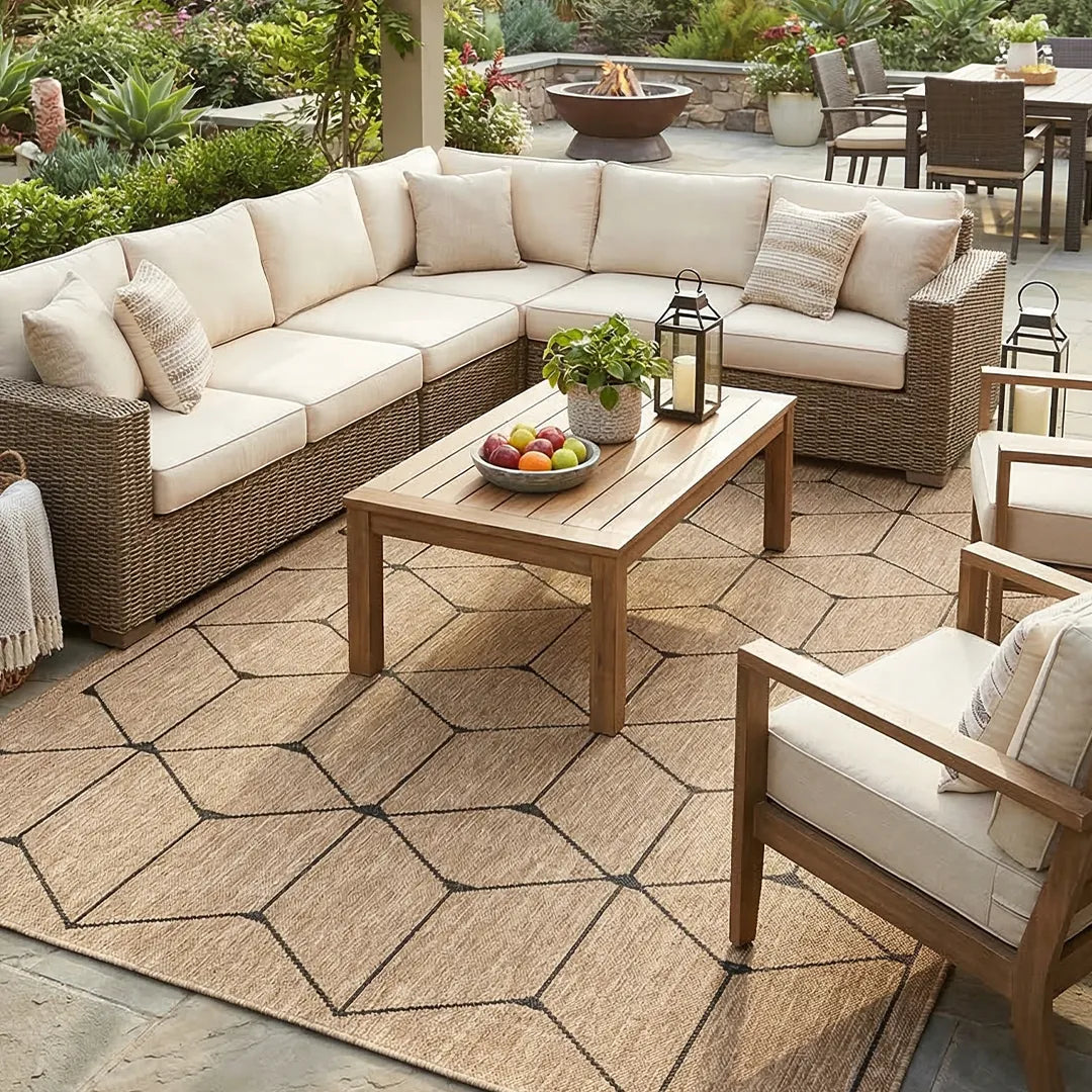 Bohemian Geometric Area Rug 8x10 - Ivory Cream, High Pile, Durable