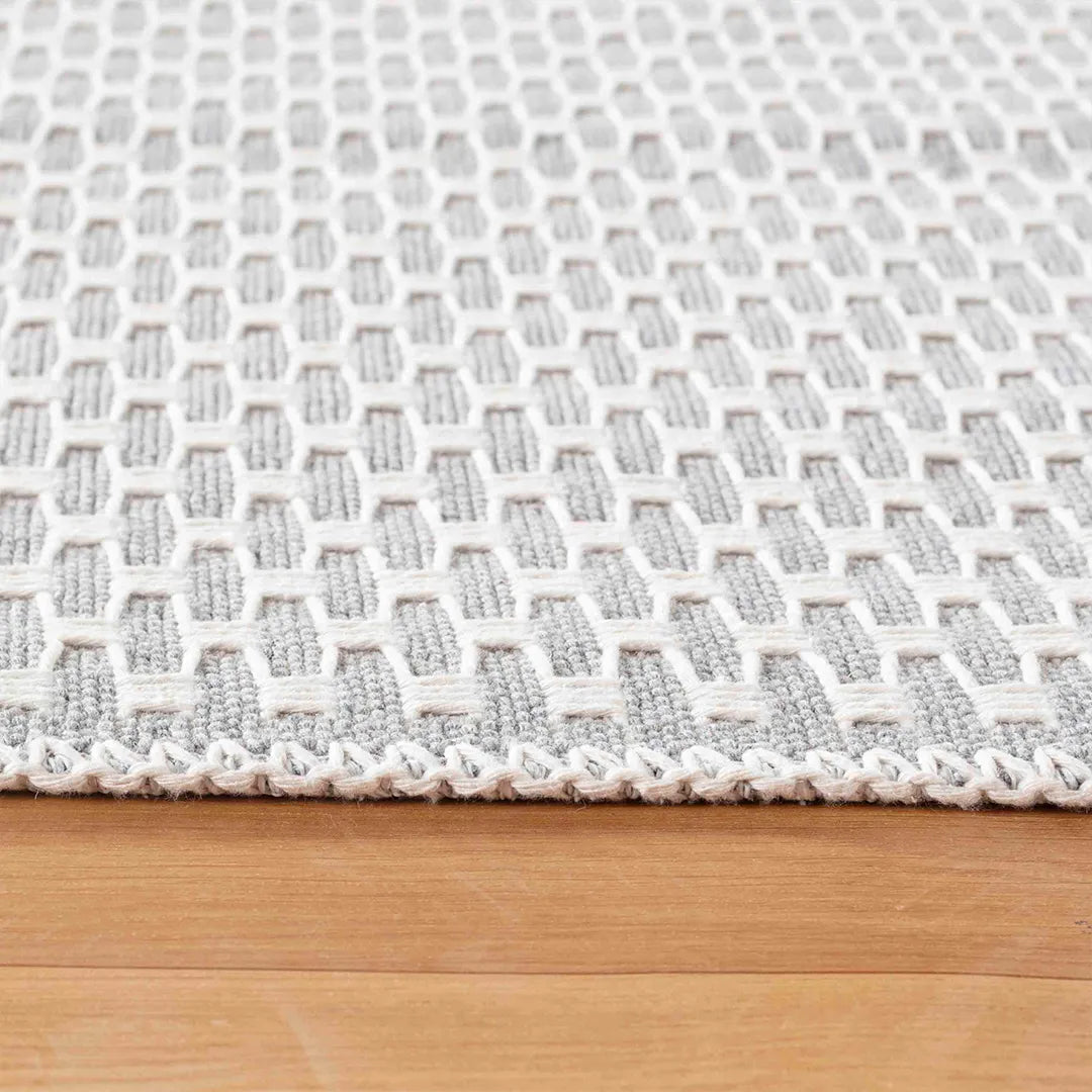 Gray Geometric Check Machine Washable Area Rug