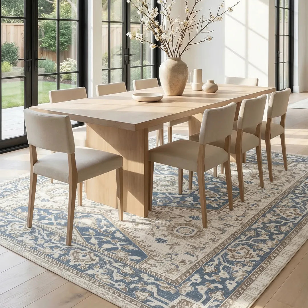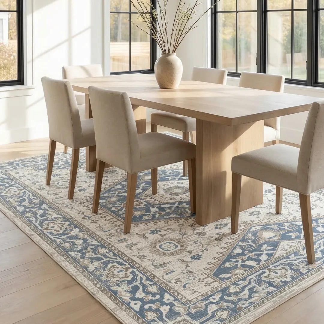 - Great under big dining tables and spacious bedroom layouts.