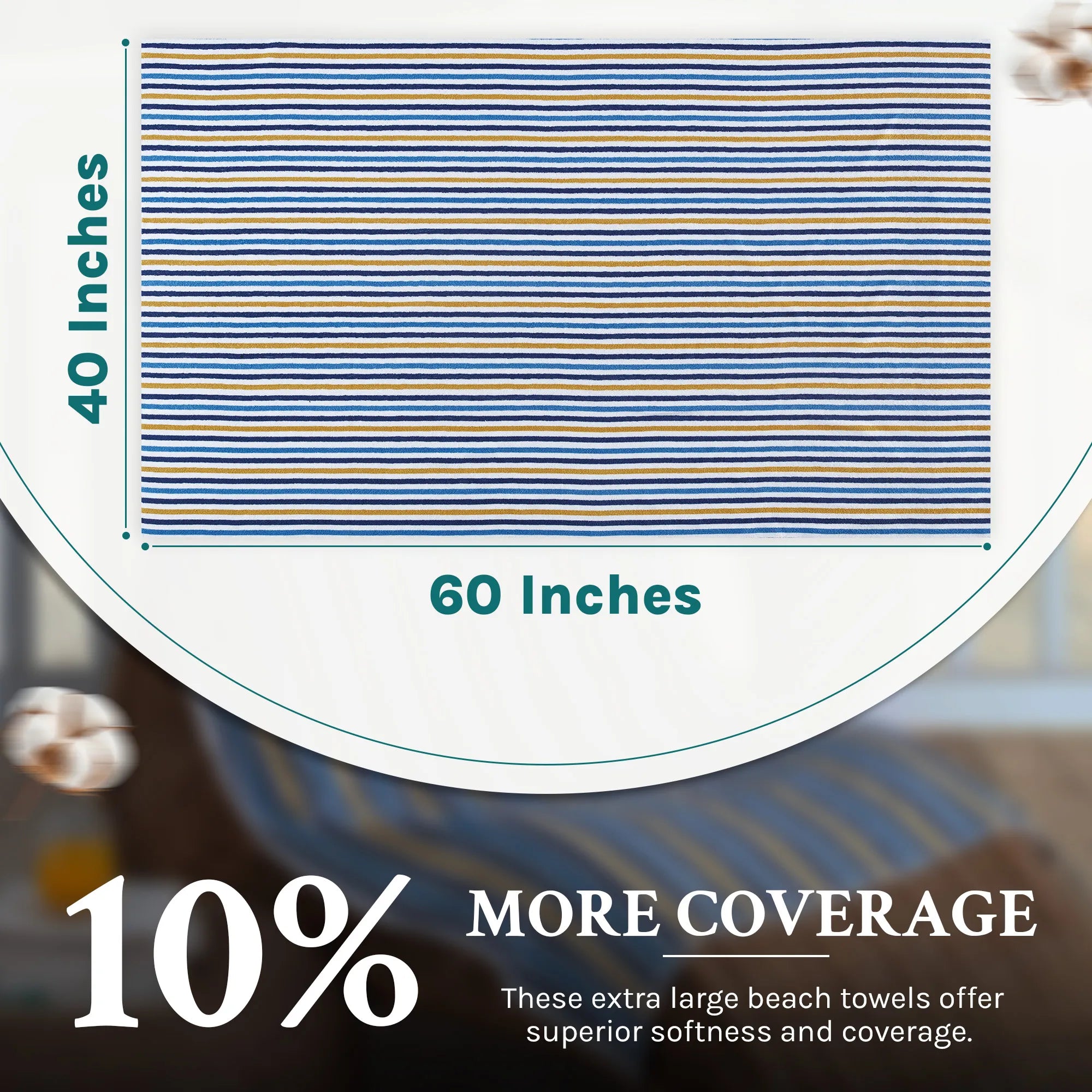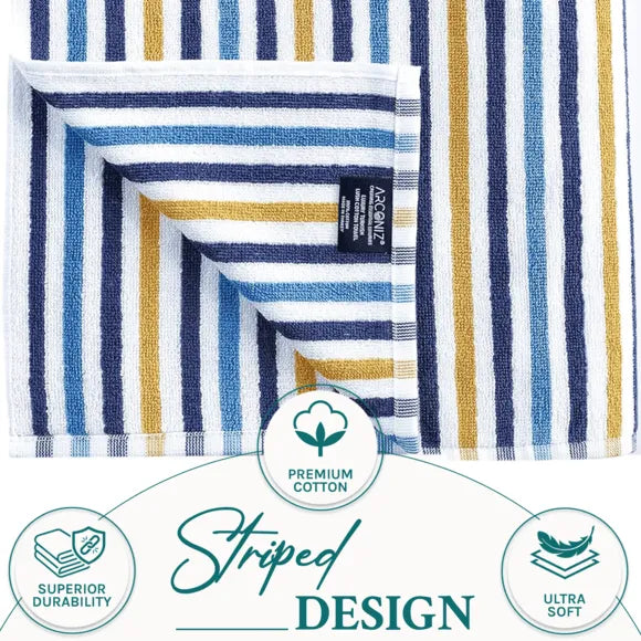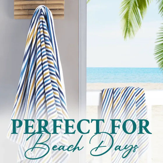 Step out onto the sand with the Premium Set of 2 Turkish Cotton Terry Striped Beach Towels, your new essential for any beach day or poolside retreat. Crafted from 100% premium long-staple Turkish cotton, these towels feature low twist loops for the ultimate softness and absorbency. Each towel is designed with a natural weave and double-stitched hem to ensure long-lasting use. This 2-piece set includes oversized bath towels that provide expansive coverage, enveloping you in comfort after a swim. Adhering to high safety and environmental standards, these towels are OEKO-TEX certified, free from harmful chemicals, ensuring your wellbeing is never compromised.