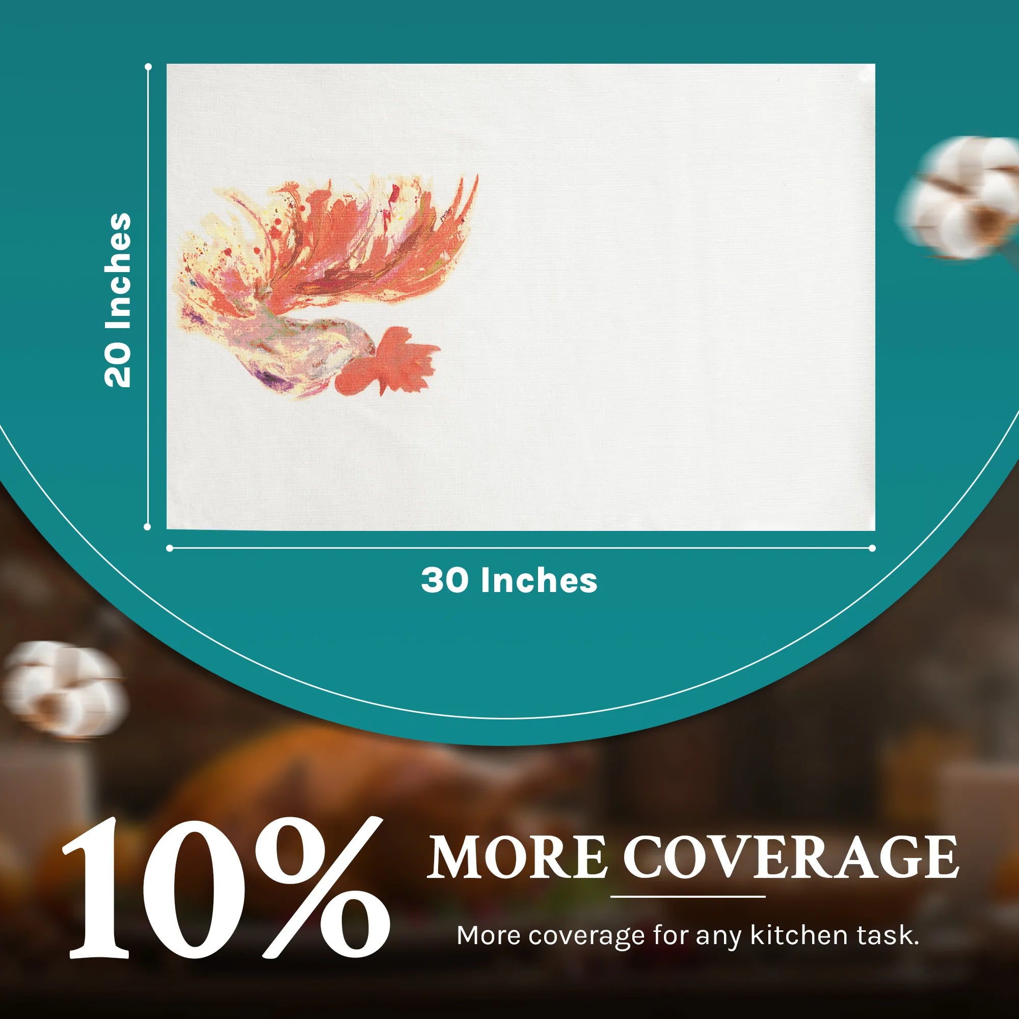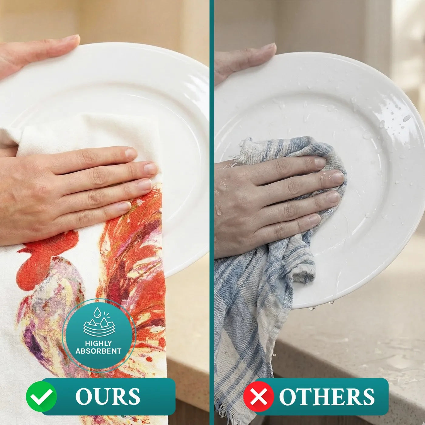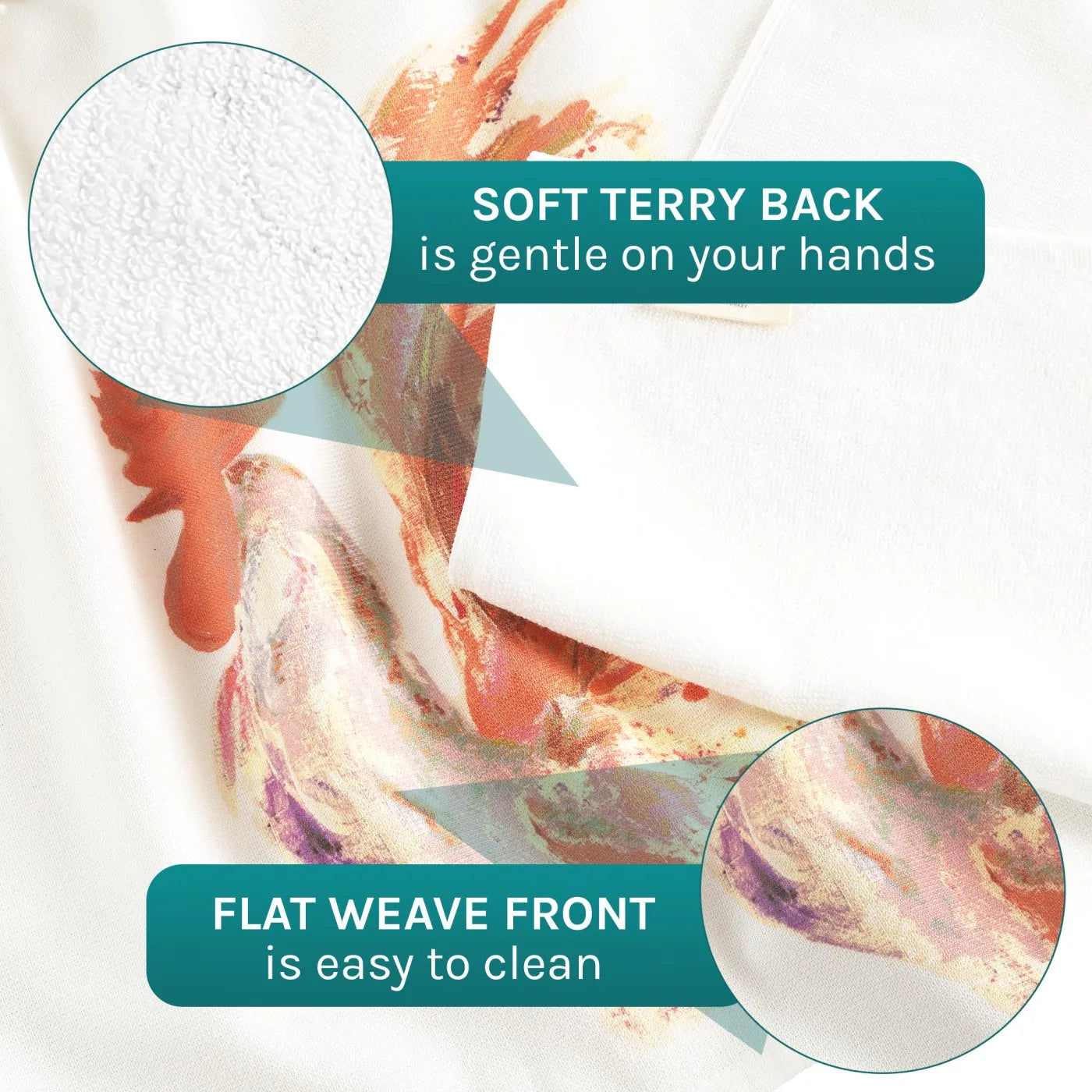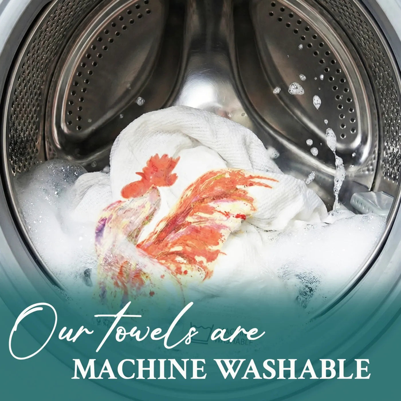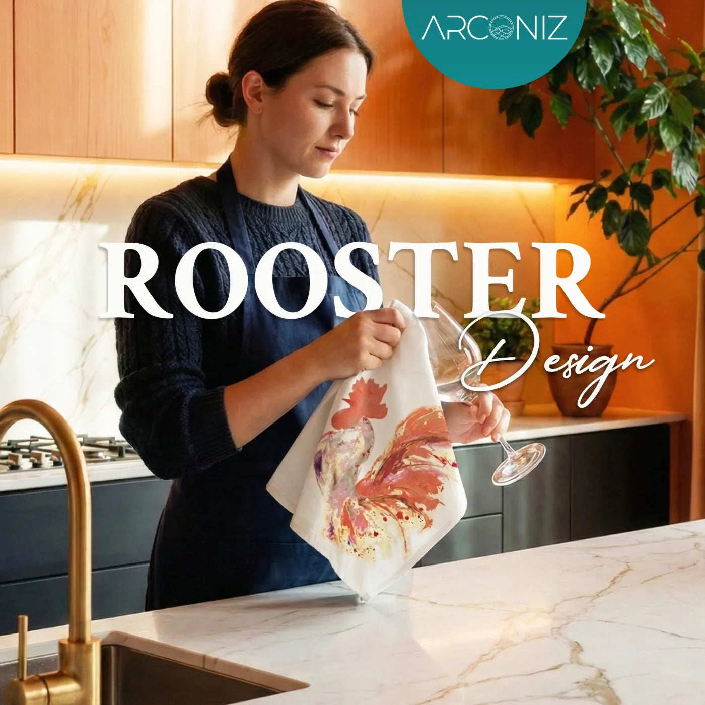 Add a rustic charm to your kitchen with our Arconiz Rooster Kitchen Towels. Featuring a soft and absorbent build, these towels are both practical and decorative. Adorned with a vibrant rooster motif set against a pristine background, they blend functionality with countryside elegance. Each oversized towel (20" x 30") is versatile enough for use as a hand towel or dish towel. Crafted with care, these towels meet the Oeko-Tex Standard 100 certification for safety and quality.
